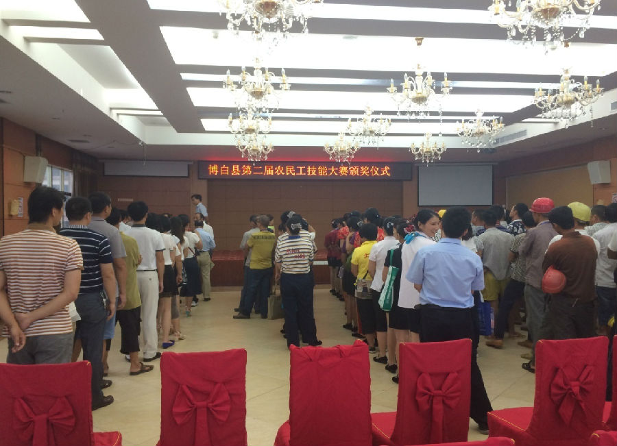 2015年8月31日,廣西博白縣法治廣場(chǎng)上張燈結(jié)彩,來(lái)自全縣各個(gè)廠區(qū)的技工門紛紛再此摩拳擦掌,共同迎接“博白縣第二屆農(nóng)民工技能大賽”開幕儀式。