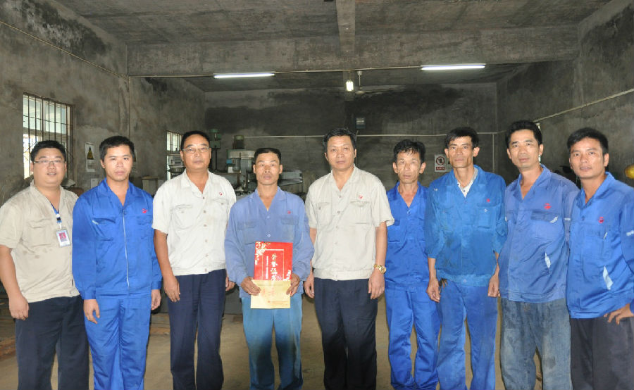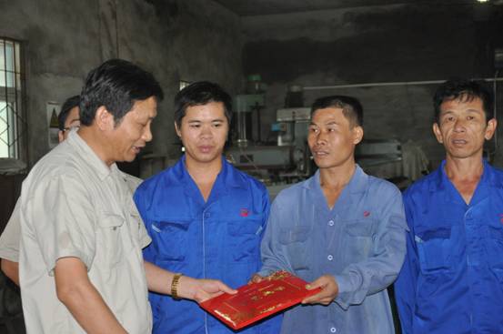 為祝賀廣西銀億公司裝備能源部王立泉獲得博白縣第二屆農(nóng)民工技能大賽一等獎(jiǎng),公司黨委、工會(huì)非常重視,從組織報(bào)名到參賽全程跟蹤,由第四支部委員陳劍鋒帶隊(duì)參賽。為了鼓勵(lì)獲獎(jiǎng)員工,黨委決定到車間對(duì)王立泉及獲獎(jiǎng)選手進(jìn)行嘉獎(jiǎng)。公司黨委委員陳為清、章群宏為王立泉和獲獎(jiǎng)選手頒發(fā)了獎(jiǎng)金和證書(shū)。
