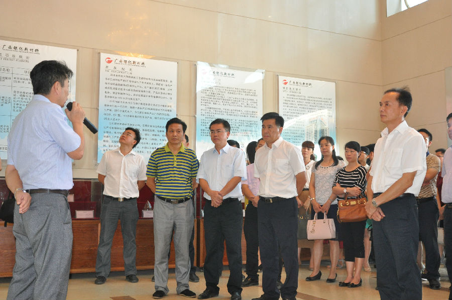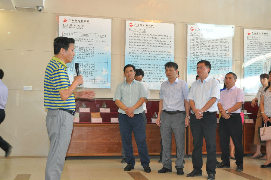 2016年10月9日上午,博白縣縣委書記羅宗光、縣長(zhǎng)羅培球帶領(lǐng)博白縣四大班子、各機(jī)關(guān)各部門負(fù)責(zé)人、各鄉(xiāng)鎮(zhèn)書記鎮(zhèn)長(zhǎng)共計(jì)130余人,在玉林市龍?zhí)懂a(chǎn)業(yè)園召開(kāi)“百日攻堅(jiān)重點(diǎn)項(xiàng)目工作推進(jìn)會(huì)議”并參觀園區(qū)重點(diǎn)企業(yè)——廣西銀億新材料有限公司。