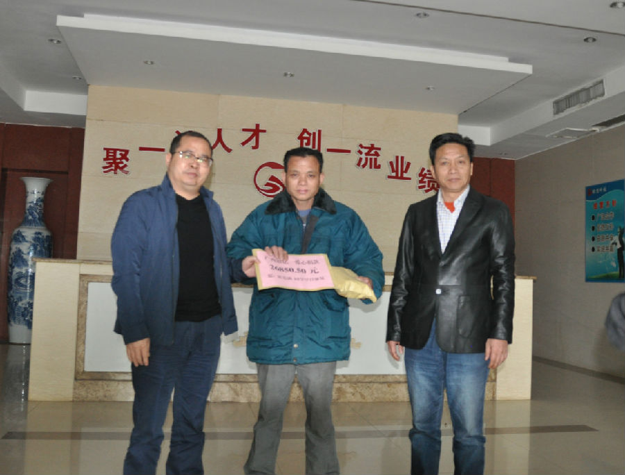 公司董事長(zhǎng)王小豐和工會(huì)主席章群宏親手把募捐來(lái)的善款交到員工家屬手中,患者家屬十分感動(dòng),動(dòng)容地說(shuō),感謝銀億公司的愛(ài)心幫助,感謝領(lǐng)導(dǎo)的關(guān)懷,感謝員工無(wú)私的愛(ài)心損贈(zèng)。