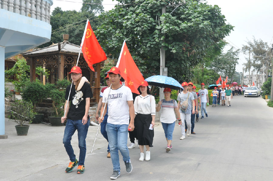 工會主席章群宏親自帶隊(duì)并任總教練,團(tuán)委書記朱旭波負(fù)責(zé)此次活動的策劃與活動的組織。抵達(dá)目的地時,已臨近中午時分,此時的太陽明媚燦爛,耀眼灼灼。章主席安排大家分好團(tuán)隊(duì),領(lǐng)取食材,組織燒烤活動。在燒烤活動期間,每組團(tuán)隊(duì)成員各展燒烤技能,有的錯落有序地排列好木炭,底下塞入少許廢舊報(bào)紙,點(diǎn)燃廢舊報(bào)紙,即可慢慢燃起木炭,呈現(xiàn)出亮紅的炭火;有的架上燒烤爐,整齊地排列好牛肉串、雞翅串、韭菜串、甜玉米棒、魷魚串等,大顯廚師之風(fēng),不一會兒便烤出了一串串香味撲鼻,色澤誘人的燒烤串,再配上點(diǎn)孜然粉、芝麻粒,便可上桌一道燒烤美味。有些成員則便可品嘗到等待已久的可滿足舌尖上味蕾的烤肉串!歷時2個多小時的燒烤午餐事畢,總教練章群宏主席立即召集所有人員,整理隊(duì)伍,并帶領(lǐng)著五個團(tuán)隊(duì),每隊(duì)各自舉著黨旗和團(tuán)旗,向冠頭嶺森林公園海灘進(jìn)發(fā)。