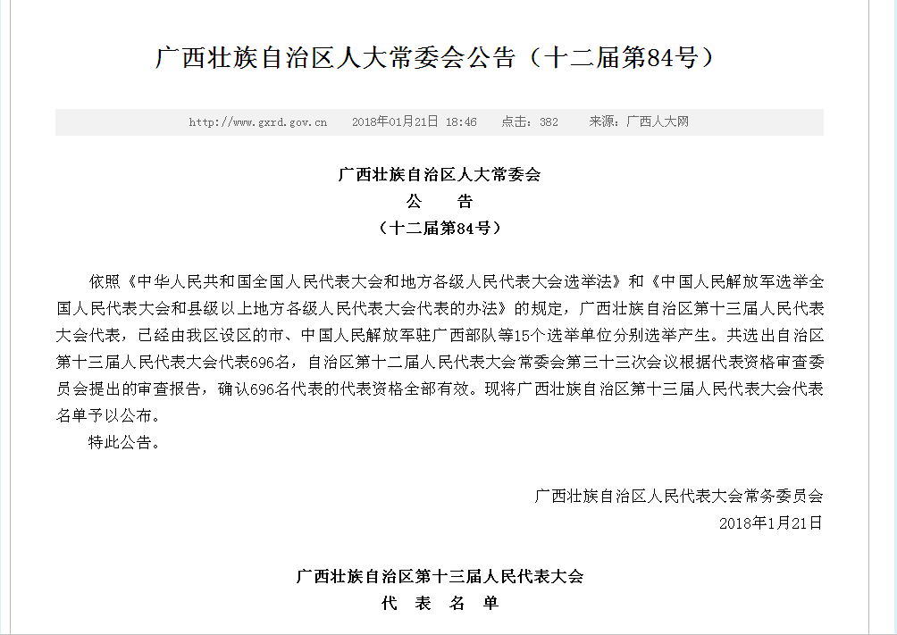 2018年1月21日,經(jīng)廣西壯族自治區(qū)第十二屆人民代表大會常委會第三十三次會議審查,確認由自治區(qū)15個選舉單位依法選舉產(chǎn)生的696名廣西壯族自治區(qū)第十三屆人民代表大會代表資格全部有效。廣西銀億90后員工張新陽當選廣西壯族自治區(qū)第十三屆人民代表大會代表。