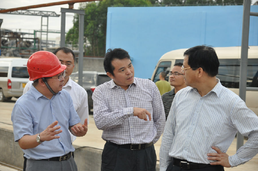 11月17日,自治區(qū)黨委常委、玉林市委書記莫恭明帶領市縣主要領導在龍?zhí)懂a業(yè)園區(qū)管委書記黃維的陪同下就企業(yè)環(huán)境保護工作深入廣西銀億調研。