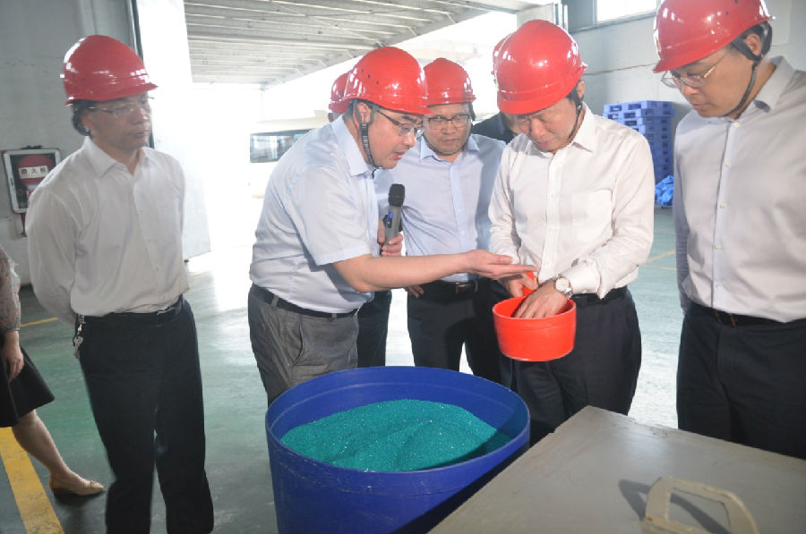 隨后,自治區(qū)黨委常委徐紹川一行在玉林市市長(zhǎng)韋韜等縣市領(lǐng)導(dǎo)陪同下,視察了鎳鹽生產(chǎn)基地,對(duì)生產(chǎn)線工藝技術(shù)、產(chǎn)品質(zhì)量和裝備特點(diǎn)進(jìn)行了詳細(xì)咨詢和了解。徐紹川部長(zhǎng)對(duì)我司生產(chǎn)基地現(xiàn)場(chǎng)的工作環(huán)境、先進(jìn)設(shè)備和產(chǎn)品實(shí)物質(zhì)量表示稱贊,對(duì)我司生產(chǎn)的產(chǎn)品表示充分肯定,并希望廣西銀億不斷提升企業(yè)綜合實(shí)力,加大技術(shù)資金投入,提高產(chǎn)銷規(guī)模和經(jīng)濟(jì)效益,不斷提升在行業(yè)和市場(chǎng)中的地位,并叮囑陪同的市、縣領(lǐng)導(dǎo)同志要為廣西銀億的做大做強(qiáng)、可持續(xù)發(fā)展提供積極的幫助和支持。